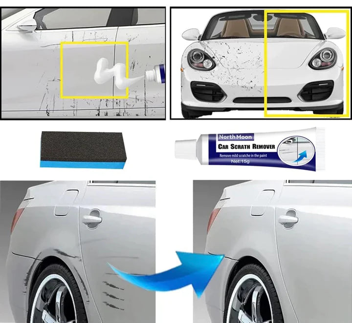 • REPARACIÓN FÁCIL Y RÁPIDA: Simplemente limpie el área de los rasguños, elimine la suciedad, . eche regular crema a la esponja mágica,  Use la esponja mágica para frotar el rasguño hasta que desaparezcan los rasguños, REALIZAR EL PROCEDIMIENTO 3 veces. Luego limpie fuertemente con un paño de MICROFIBRA